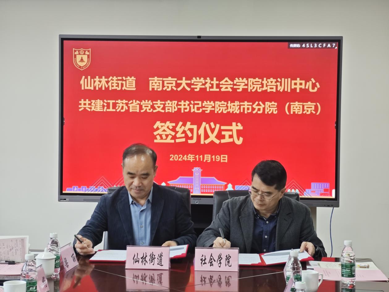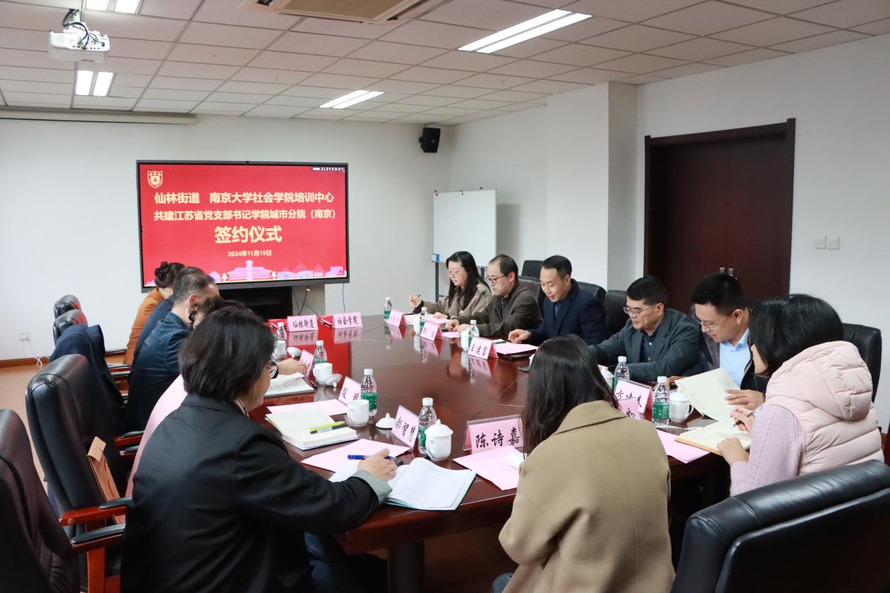 11月19日下午,开车漫画 与仙林街道共建江苏省党支部书记学院城市分院(南京)(以下简称“城市分院”)签约仪式在开车漫画 仙林校区举行。开车漫画 党委书记王建富、院长吴愈晓、办公室主任郭浩、培训中心主任方建春、培训中心副主任胡春华参加签约仪式。仙林街道党工委书记欧立祥、党工委副书记王杨、纪工委书记殷明、江苏省党支部书记学院城市分院(南京)教育发展中心主任梁丽、仙林党群服务中心主任郝智慧等出席活动。