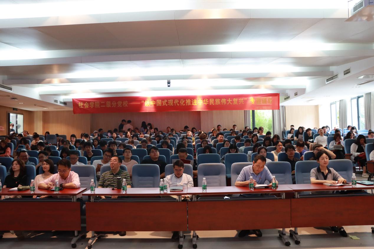 为不断推动学习贯彻习近平新时代中国特色社会主义思想走深走实,贯彻落实学校党委关于加强二级分党校建设的决策部署,扎实推进社会学院师生党员基本培训工作,6月20日上午,社会学院党委分党校举行春季学期师生党员基本培训专题辅导报告。历史学院孙扬副教授作“以中国式现代化全面推进中华民族伟大复兴”专题辅导报告。社会学院党委书记王建富主持报告会。