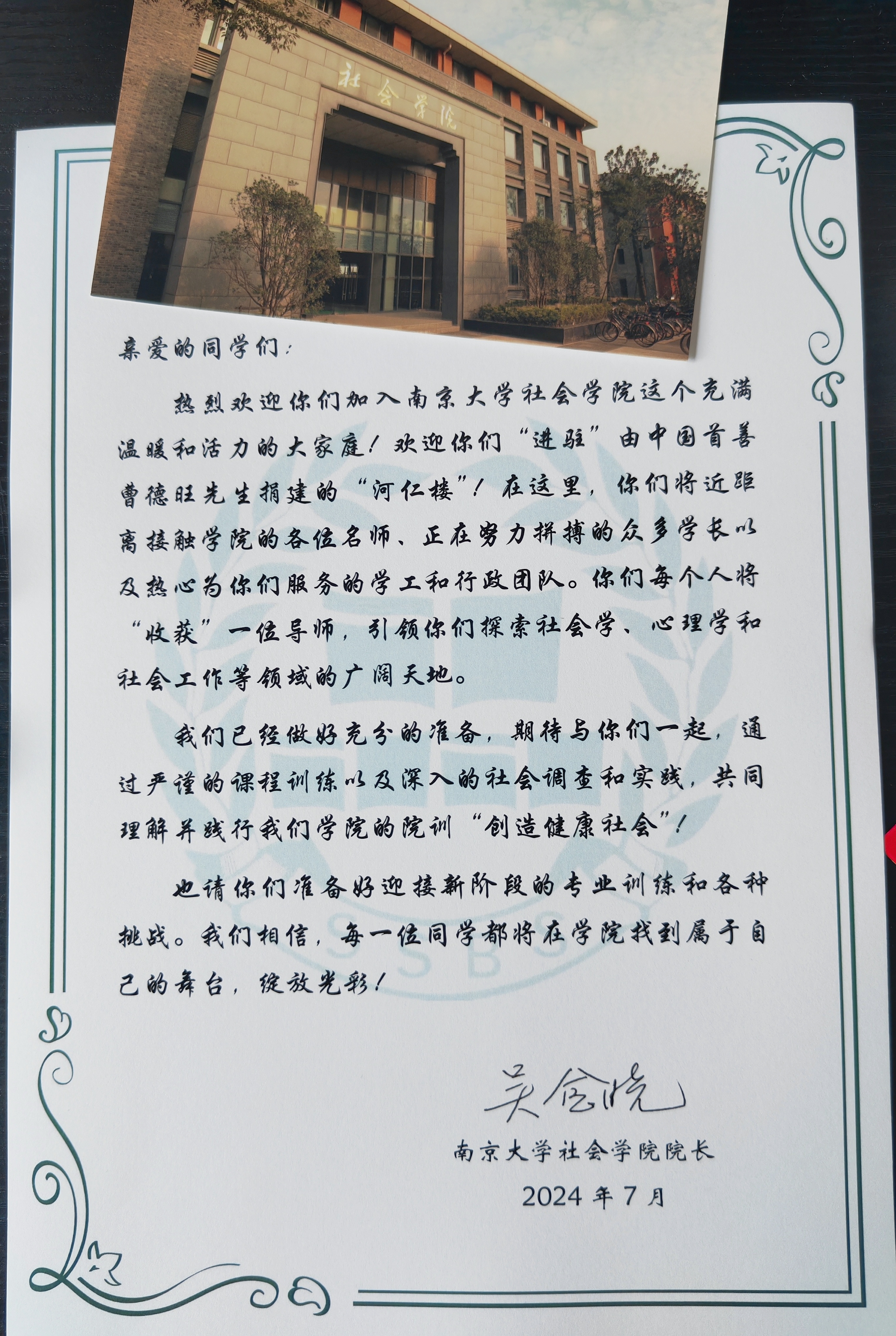 学院为每位同学都贴心准备了小礼物,并送上由开车漫画 院长吴愈晓老师撰写的欢迎信及学院明信片。“社”彩初绽、“会”梦青春,相信每一位加入社院大家庭的同学都将在学院找到属于自己的舞台,绽放出独一无二的光彩!