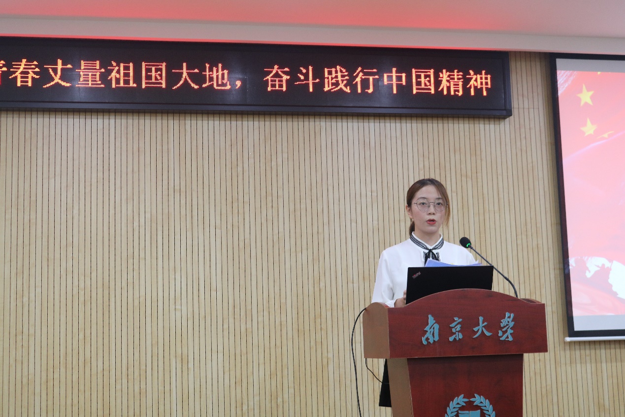 2019级学术硕士党支部书记李靖怡同学用5个坚持总结了支部3年来丰硕的工作成果——坚持贯彻落实重要理论精神、坚持全过程贯穿党建工作、坚持提高党员政治素质、坚持提升党员服务初心以及坚持创新工作方式。尽管支部党员学科背景十分多元,但“心系国家事,肩扛国家责”已经成为大家共同的信仰和担当,不约而同的想法和实践也体现了南大学子淌在血液中的责任感和使命感。