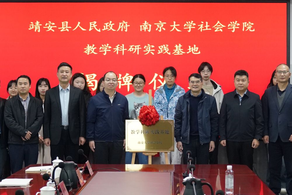 11月3日,南京大学社会学院与江西省靖安县人民政府合作共建的教学科研实践基地在江西省靖安县正式揭牌。靖安县委书记喻军,靖安县委副书记、县长刘思,我院院长吴愈晓、副教授马道明、特任副研究员左雯敏等人参加揭牌仪式。
