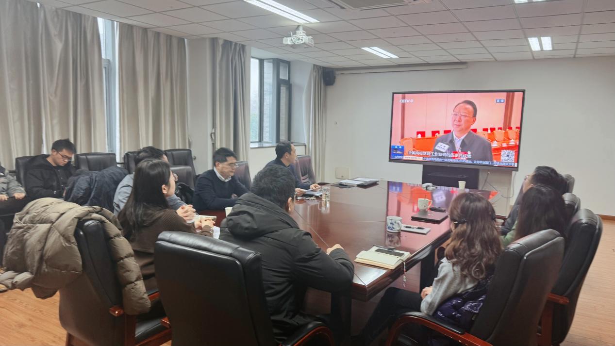 与会同志共同观看会议新闻报道及我校党委书记谭铁牛接受采访的视频。