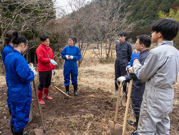 在阿部老师家所在的农村,我们在荒井先生的指导下对休耕的田地进行整理,将堆积的杉树枝移到另一地点,并在翻土、整土的基础上播撒麦种。19日上午,虽然天空下着雨,但是本着“田野工作不问刮风下雨”的心态,我们按照原计划学习了“自然农法”的温度测量。在荒井先生的介绍中,我们了解到日本农业专家木村秋则提倡的无农药苹果栽培法,即“自然农法”。不同于传统的栽培方式,“自然农法”主张依循大自然法则的农业生产方式,维护土壤本身的营养和再生能力,绝不使用任何化学肥料、农药和任何残害土壤的添加物。虽然这种栽培方式的成本较高,但是荒井先生依旧认同并在实际农业生产工作中应用“自然农法”,这让我们联想到中国的农业栽培类型和农民的耕种理念,在中日农业发展的比较中对“乡村振兴”和“三农”等课题有了进一步的思考。
