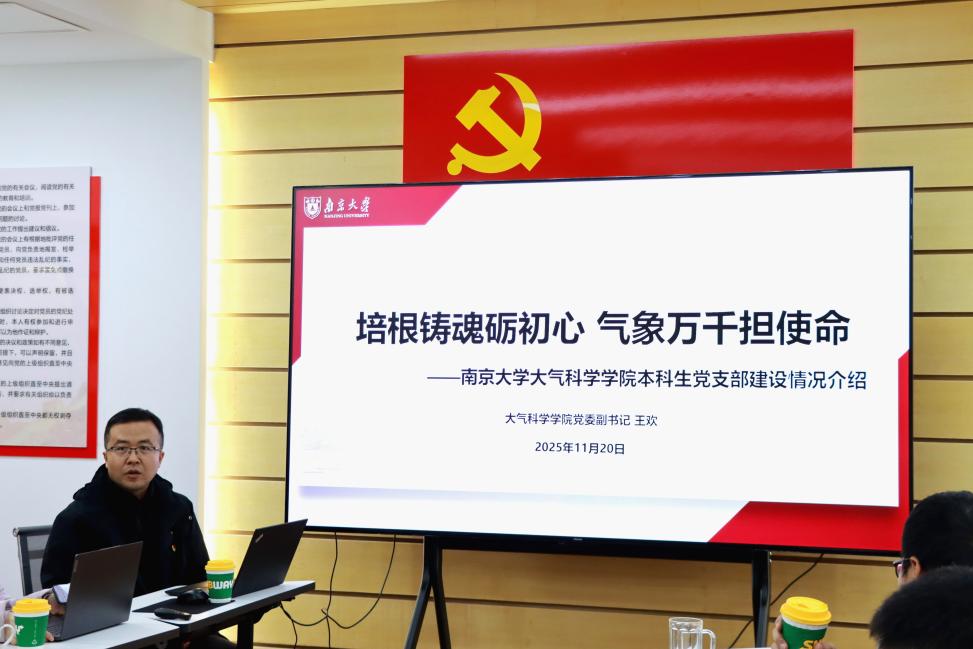 王欢系统介绍了大气科学学院本科生党支部作为“全国党建工作样板支部”的创建经验,围绕“三位一体”建设框架展开:一是完善体制机制,强化组织保障,通过推进支部工作规范化、标准化管理,夯实组织基础;二是聚焦“七个有力”,筑牢坚强堡垒,重点阐述了构建“青心向党”常态化教育机制以创新党员教育形式,并严格党员管理监督,确保支部作用发挥到位;三是发挥学科特色,培育党建品牌,详细介绍了打造“五个一”党建工作品牌矩阵,以及构建“线上+线下”党建育人双平台的创新实践,为党建工作赋能学科与人才培养提供了鲜活范例。