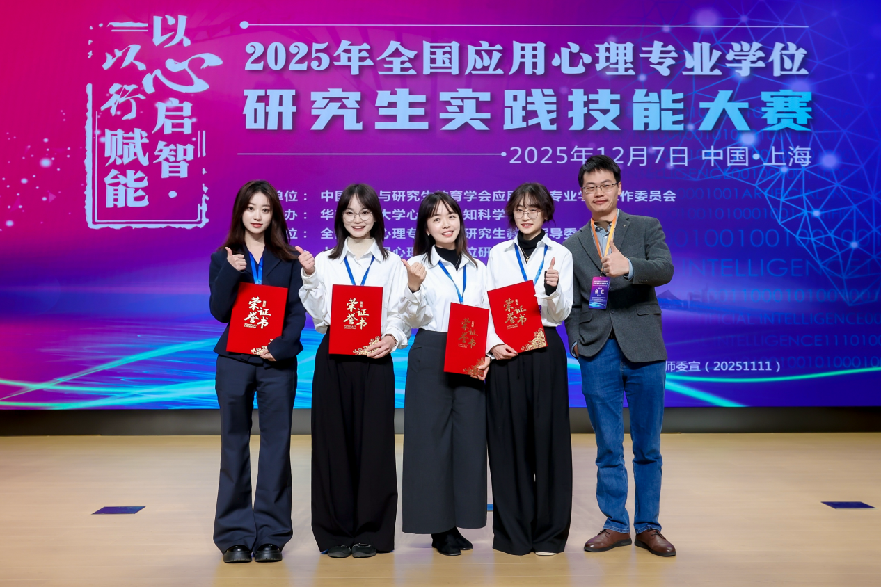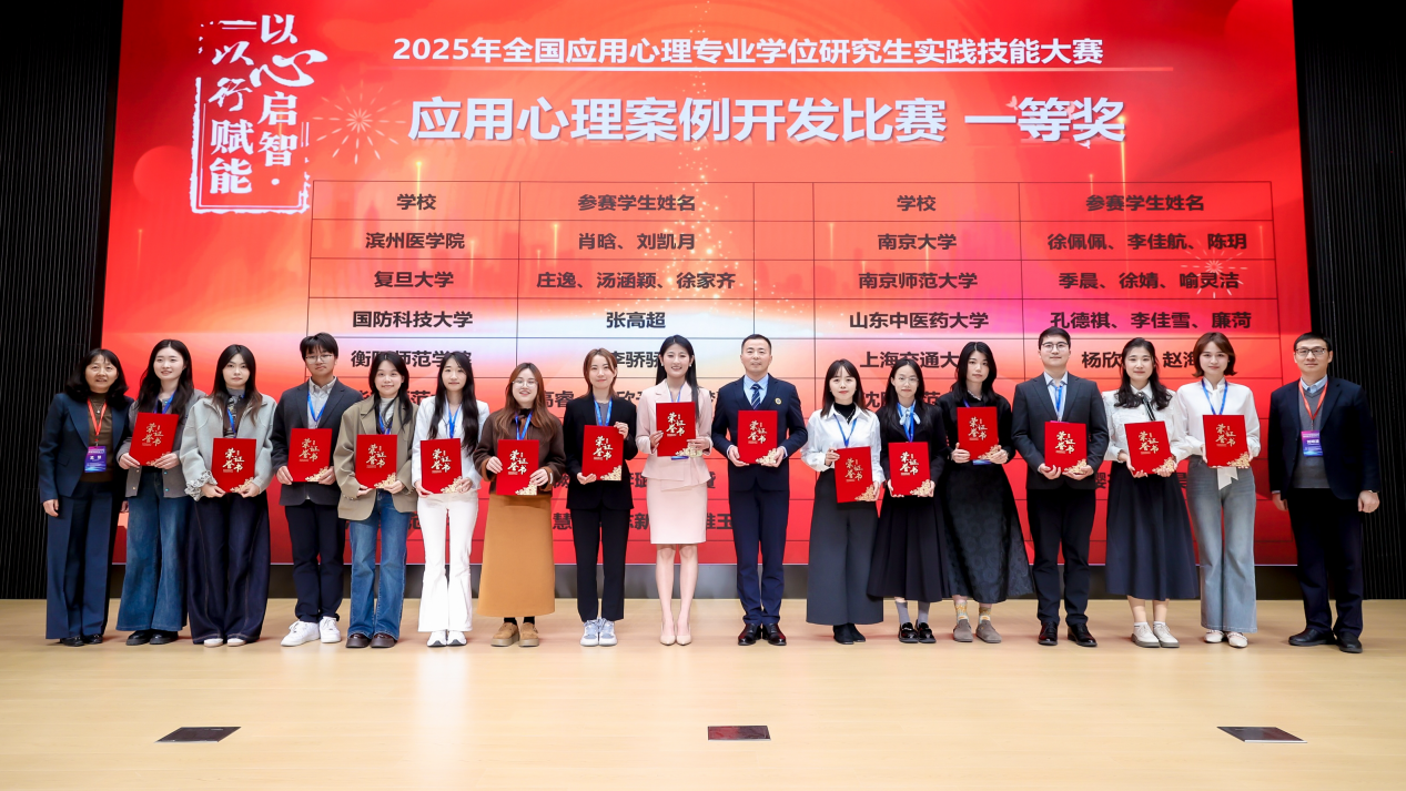 长期以来,南京大学社会学院应用心理硕士(MAP)坚持“科学家—实践者”培养模式,鼓励学生从真实社会问题出发,开展有温度、有循证、可落地的实践探索。本次赛事成绩不仅是这一育人理念的生动呈现,也充分展现了MAP学生在应用心理前沿领域的创新动力与实践担当。参赛学生表示,参赛过程不仅深化了对专业知识的理解与运用,也在真实社会需求中锤炼了实践能力。未来,社会学院将持续推进“学研用”一体化MAP研究生培养机制,促进更多科研成果走向社会,为守护社会心理健康、培养高层次应用型心理人才贡献力量。
