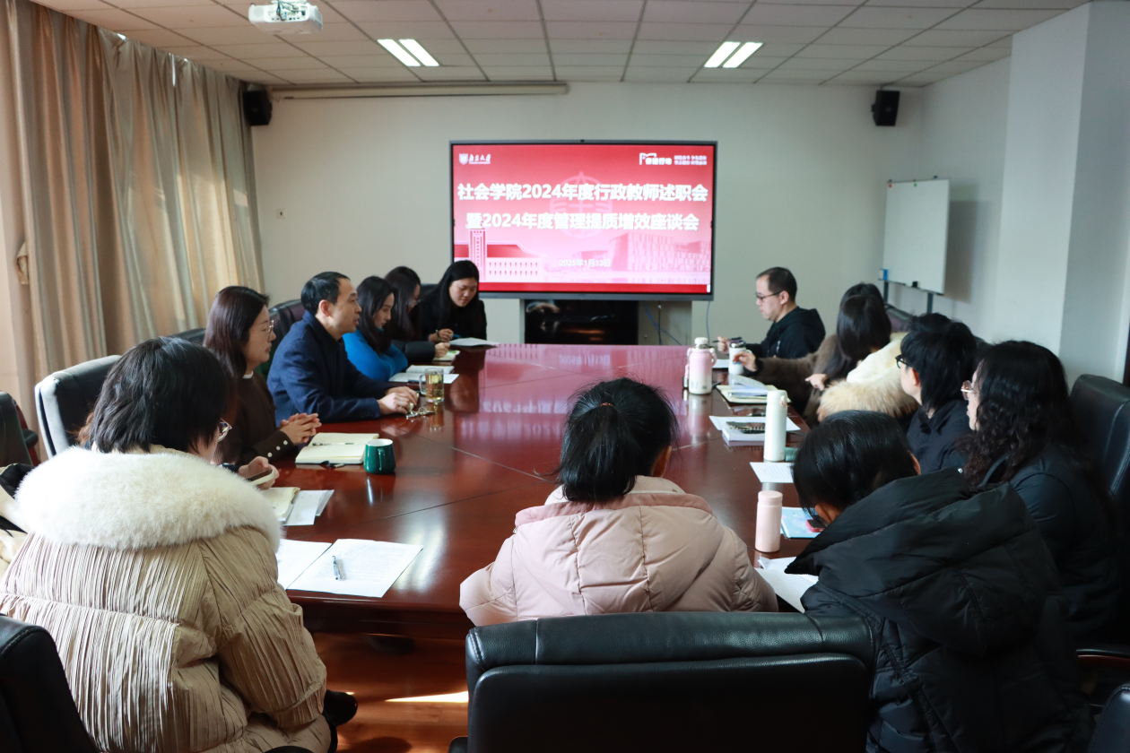 1月13日,社会学院召开2024年度行政教职工述职会暨管理提质增效座谈会。学院党委书记王建富、党委副书记曹慧中参加会议。