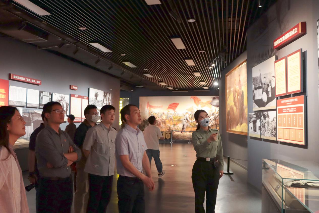 在讲解员的带领下,师生党员参观了新四军纪念馆基本陈列《铁军忠魂——新四军历史陈列》。展览包括“民族危急 铁军诞生”“抗日战旗 遍插华中”“重建军部 浴火重生”“兵民鏖战 坚持敌后”“战胜困难 建设根据地”“局部反攻 扩大解放区”及“走向胜利 铸造辉煌”七个部分。展厅内陈列着宝贵历史影像与实物,师生们认真观看、深入交流,力求能够对新四军历史多一份了解,对铁军精神多一分感悟。