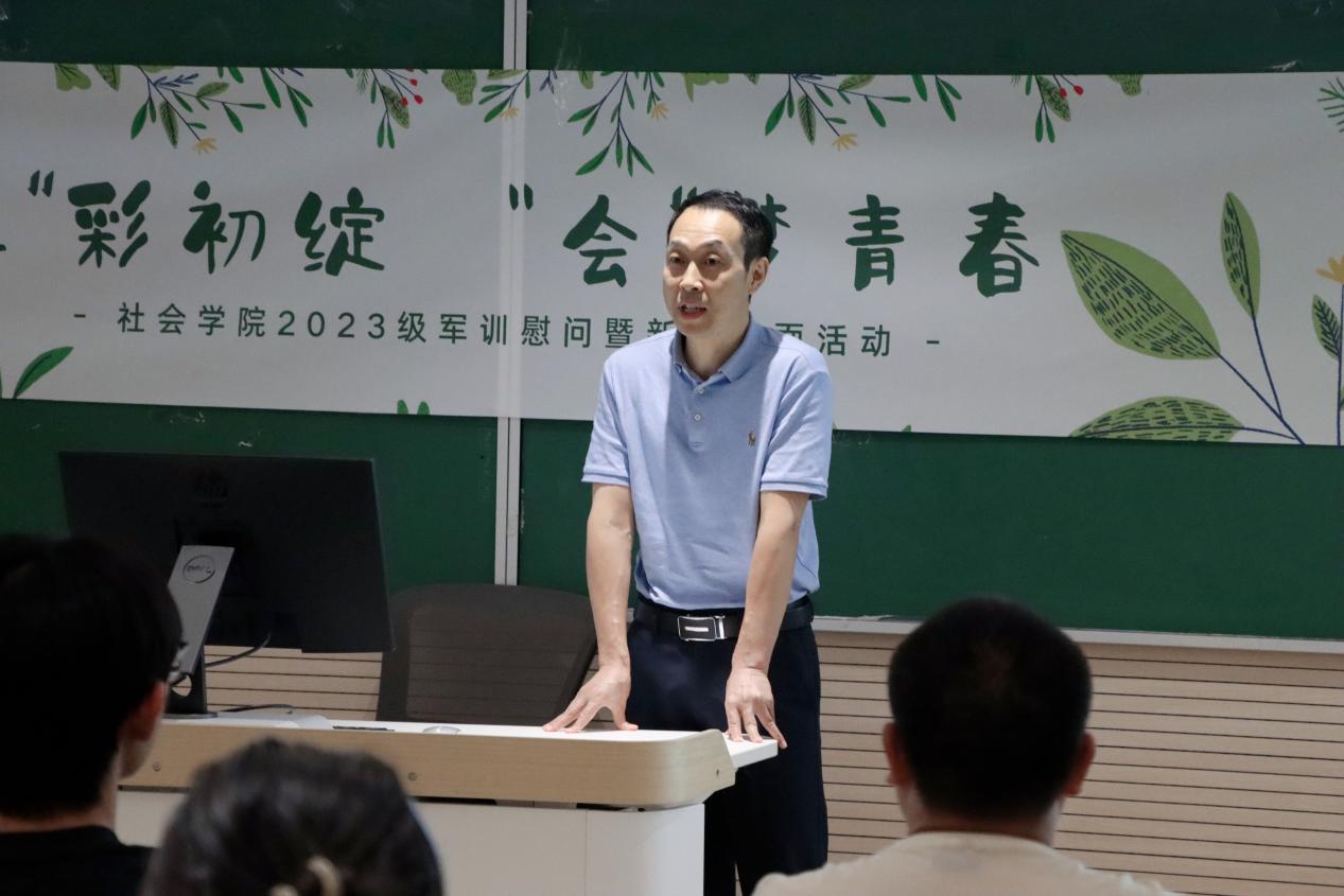 王建富老师对加入开车漫画 的23级同学表示诚挚欢迎,从学术传统、专业设置、师资队伍、软硬件设施等方面向同学们全面介绍学院,他表示“大楼”“大师”均服务于“一流人才”的培养,并寄语同学们学好专业夯实基础、跳出专业综合发展、快乐生活健全人格。