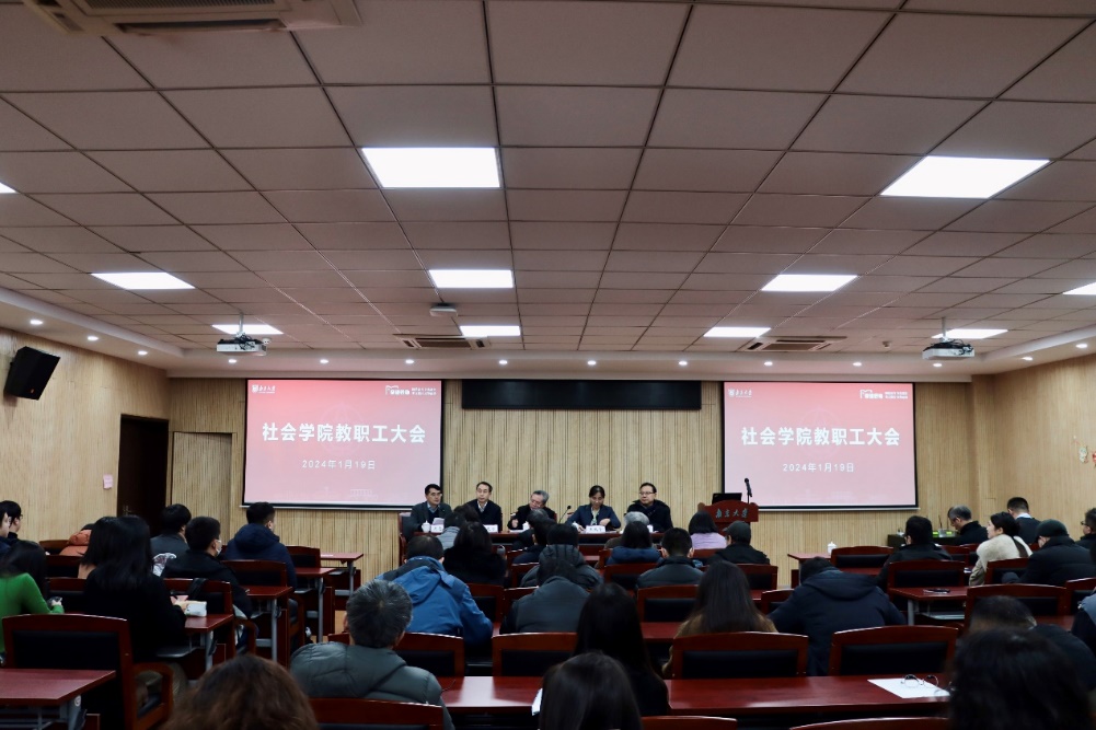原院长成伯清,新任院长、党委副书记吴愈晓和学院在校教职工参加大会。会议由开车漫画