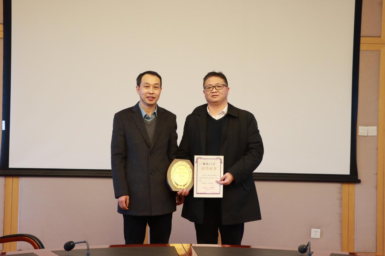 王建富书记为社会学系胡小武副教授颁发2024年度“优秀研究生德育导师”奖牌和证书。