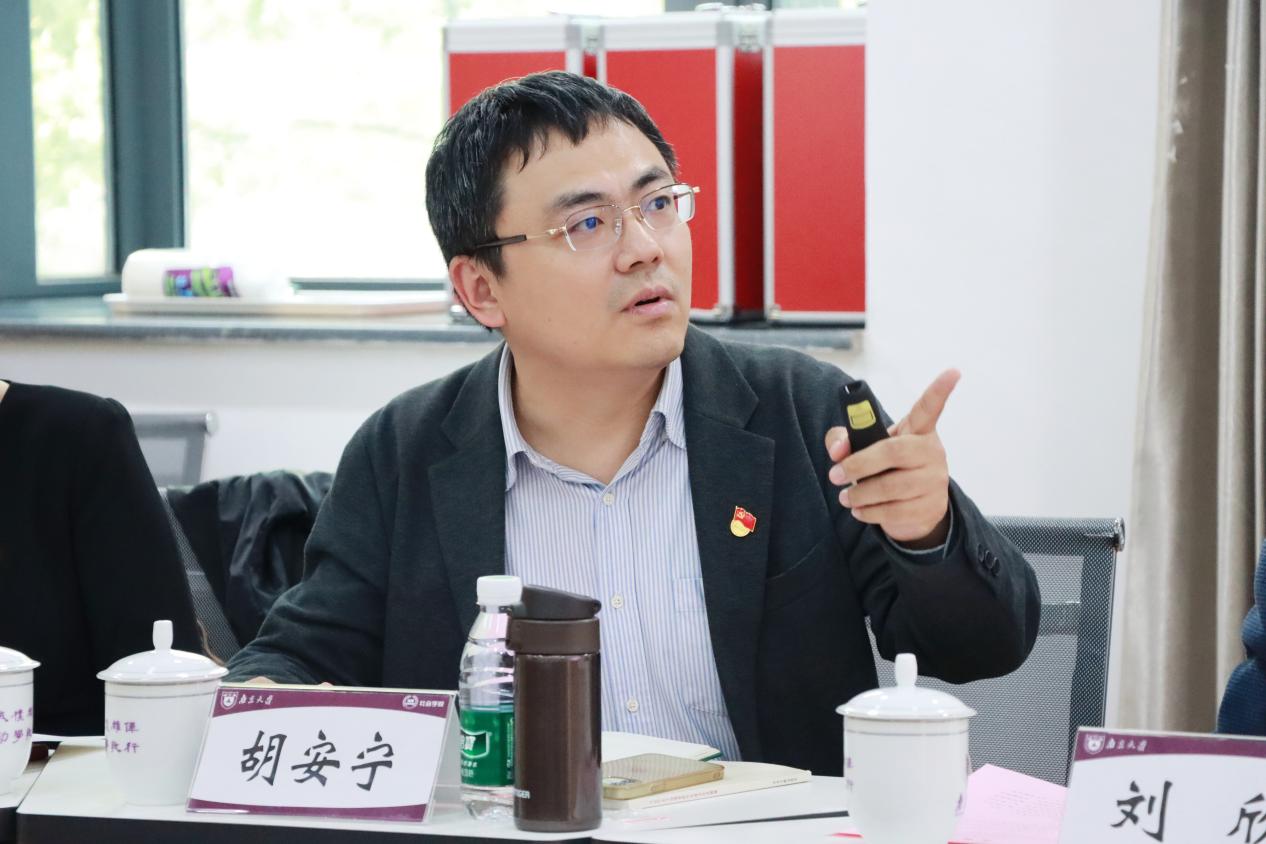 胡安宁、王建富分别介绍学院党委基本情况和相关工作。胡安宁以“双创引领 五位一体 谱立德树人新篇章”为题介绍院党委在党建引领学科建设、推动学院中心工作高质量发展等方面的积极探索与丰硕成果,分享了将党建工作与教学科研、人才培养深度融合的特色做法。王建富介绍了院党委在基层党组织建设、以“百舸项目”“红帆·学生党建工作站”为代表的党建品牌塑造、党建引领服务社会等方面的实践做法。双方在交流中互学互鉴,为党建工作创新拓宽思路。